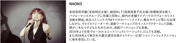 障がいを持つ人、家族、ヘルパーさんが一緒になって、障がい者ワークの経験も豊富な表現集団「チームうなば~ら」によるワークショップを体験し、音やからだを通じて特別な瞬間を分かち合える取り組みを行います。安全を確保するためにも一度に多くの人数を招くのは難しいので、終了後にその記録をホームぺージにて「写真展」という形でシェアしながら少しずつ輪を広げ、ゆくゆくは障がい特性に配慮したイベントやまちづくりに繋げたいと思います。