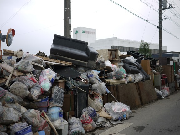 泥をかぶったあらゆるものがごみとなって積まれていました。