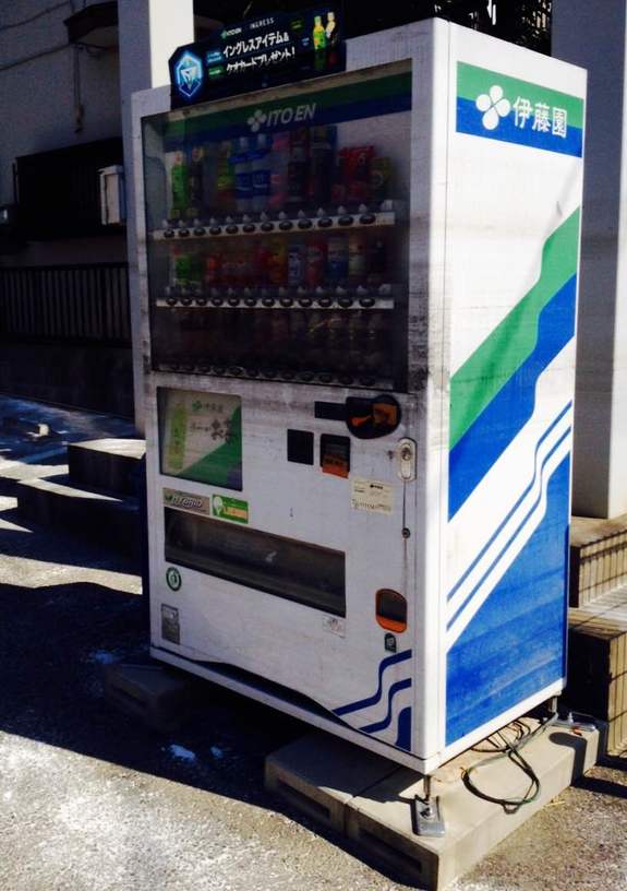 使用中止の自動販売機には、浸水の跡が残っています。