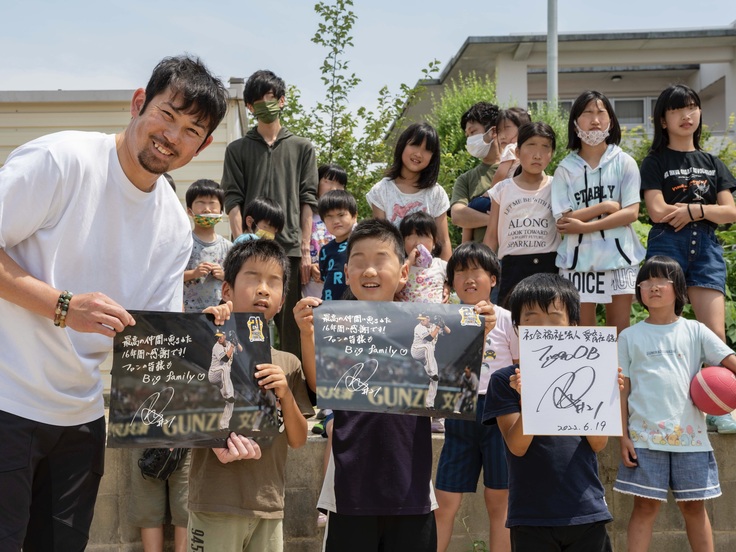 2007年、阪神タイガースを窓口に、一般公募で当選した親子約50組を球場に招待。2009年の同イベントの機会には、前記したように「施設で暮らしている子どもたちに何かしてあげたい」と考えていましたので、同年は一般公募の親子だけではなく、兵庫県西宮市の児童福祉施設の子どもたち15名程を球場に招待。また東日本大震災が起きた2011年には、観光庁の協力のもと、被災地福島県から、被災により様々な喪失感を抱いていた野球チームの子どもたちを、甲子園球場に招待することもできました。