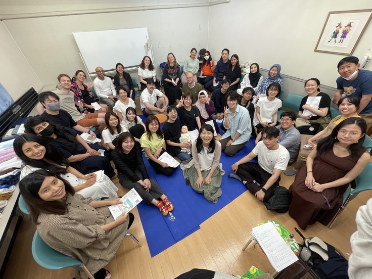 27名の外国人ママパパが真剣に沐浴やおむつ替え、抱っこの仕方を学び、終わった後はおしゃべりに花が咲きました♪