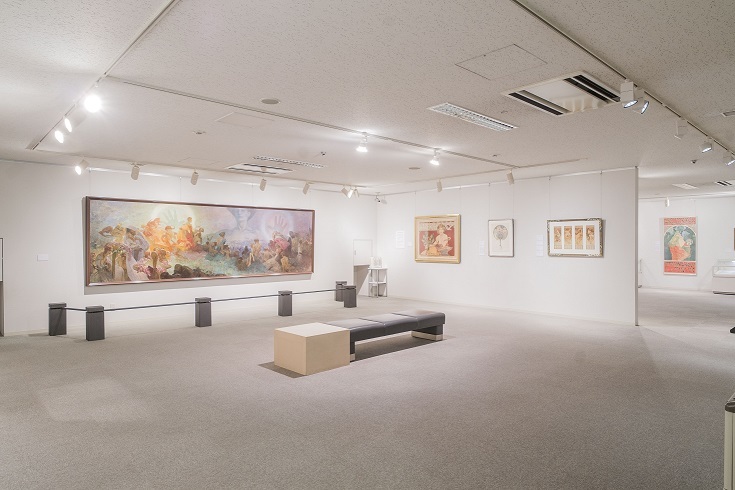 当館では、年3回の企画展を中心に、フランスやアメリカ、チェコで活躍したミュシャの初期から晩年に至るあらゆる創作活動を紹介しています。
