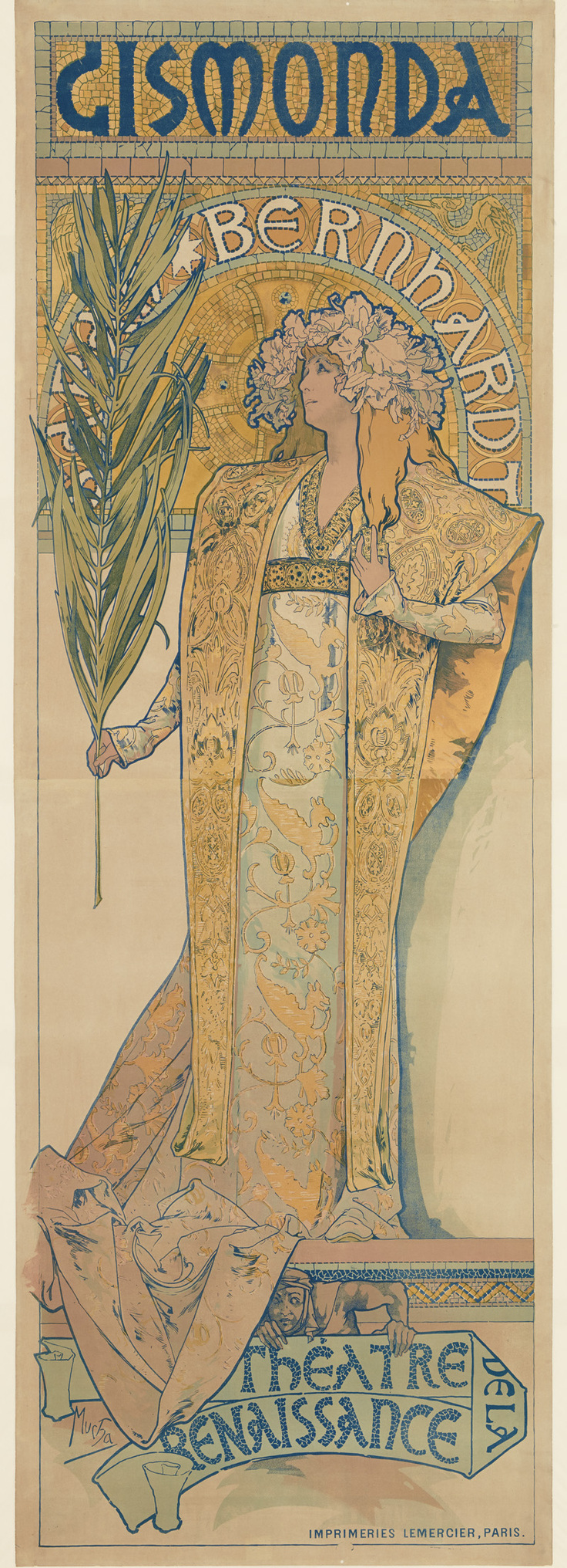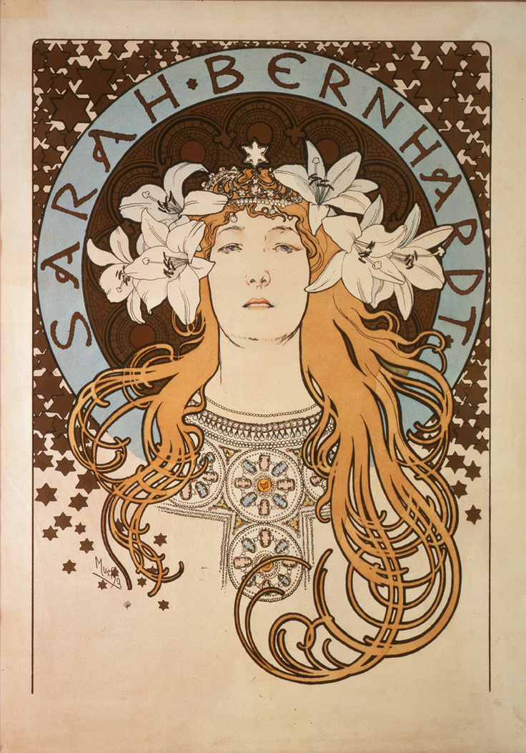 アルフォンス・ミュシャ(1860-1939)は、19世紀末から20世紀初頭にかけて花開いたアール・ヌーヴォーの代表的画家です。ミュシャは、現在のチェコ共和国で生まれ、パリの舞台女優、サラ・ベルナールのポスターを制作して一躍有名になりました。ミュシャの作品はしなやかな曲線と美しい色彩が特徴で、異国趣味や古典古代を思わせる装飾様式のほか、日本など東洋の美術の要素もみられます。また、『明星』や『みだれ髪』などを通じて日本にも大きな影響を及ぼしました。