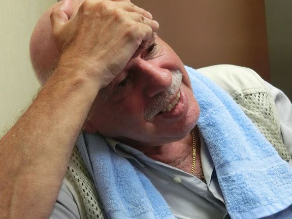 インタビュー中、亡くなったおじさんを思い出して、涙ぐむ場面も
