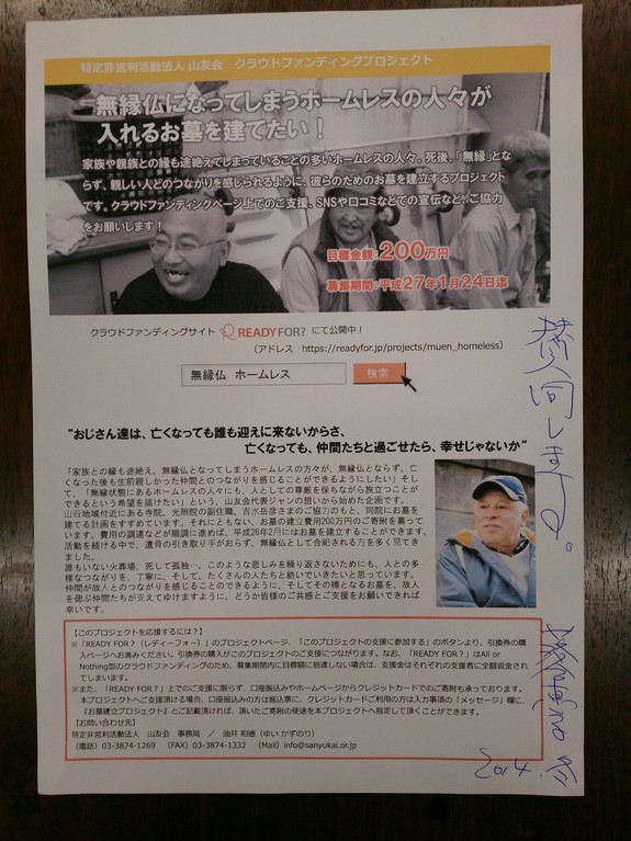 この「無縁仏となってしまうホームレスの人々のためのお墓を建てたい!」の企画についても記載されています。