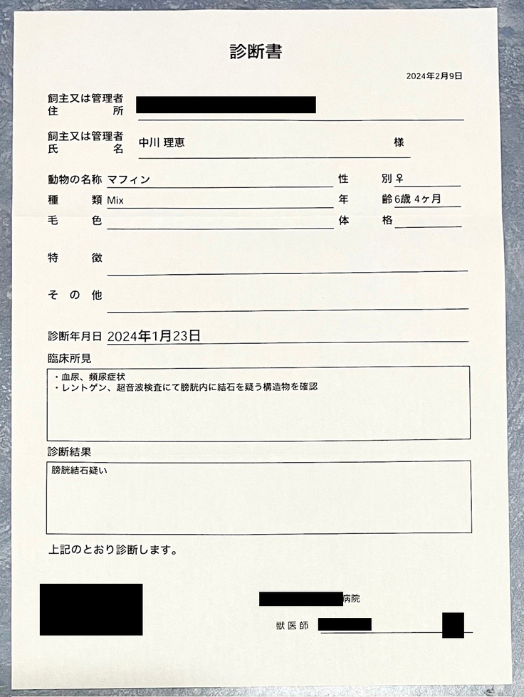 ページ上に掲載している診断書や診療明細書などの資料は全て動物病院から掲載の許諾を得ております。