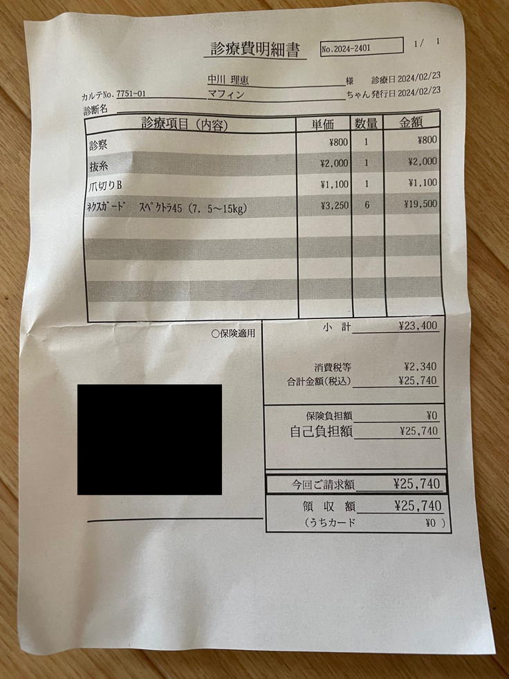 掲載許諾を得られなかった動物病院の診断書と診療明細書はREADYFOR事務局に提出しています。