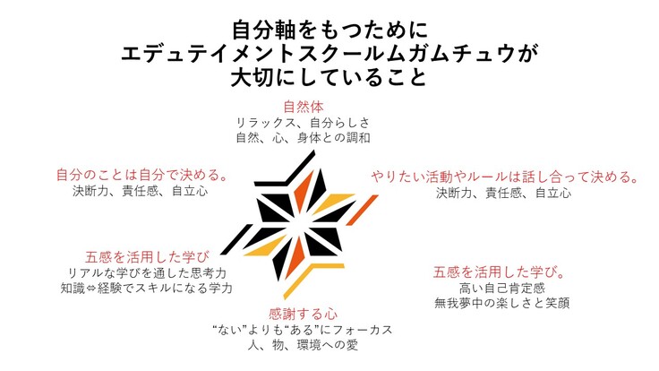 エデュテイメントとは、エデュケーション(教育)とエンターテインメント(楽しみ)の融合で、自分の才能を生かし、やりたい活動をしながらワクワク学び、自分軸をつくっていくことをテーマにした、新次元フリースクールです。