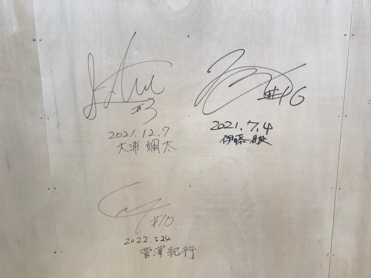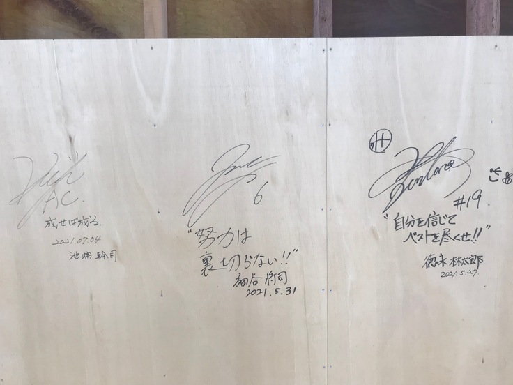 (仁井田校の壁にBリーガーから応援サインを書いていただきました)