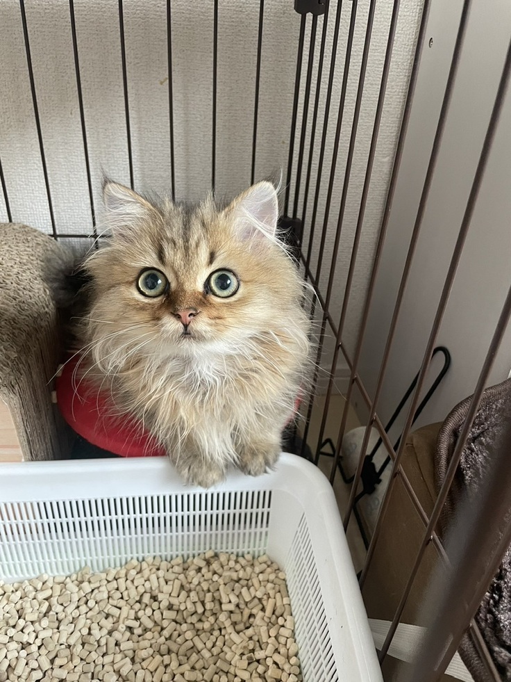 ケージの中で過ごすことが多く、むぎの不調の前触れとも言われるトイレの中でくつろぐ姿が多く見られました。