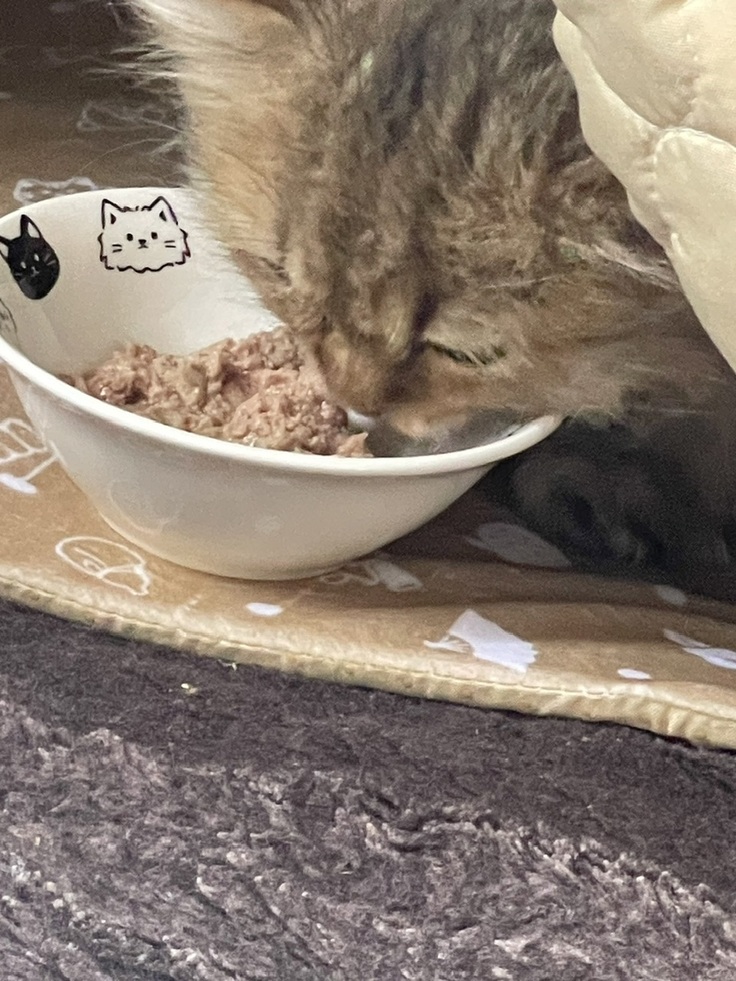 こたつの中にまでご飯が来ました🍚でもたべてくれました!