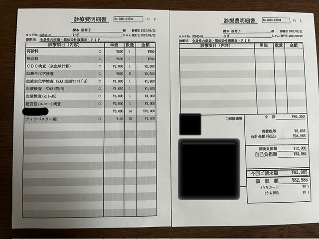 FIPが原因ではなく薬の副作用の可能性があるかもしれない。服用初期に下痢があると症例報告もあるらしい。