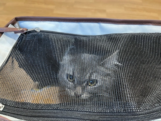 動物病院に行く前にはキャリーバッグを嫌がっていたのに、採血のあとは自分からキャリーバッグに逃げ込んでたけど🧳🐈⬛