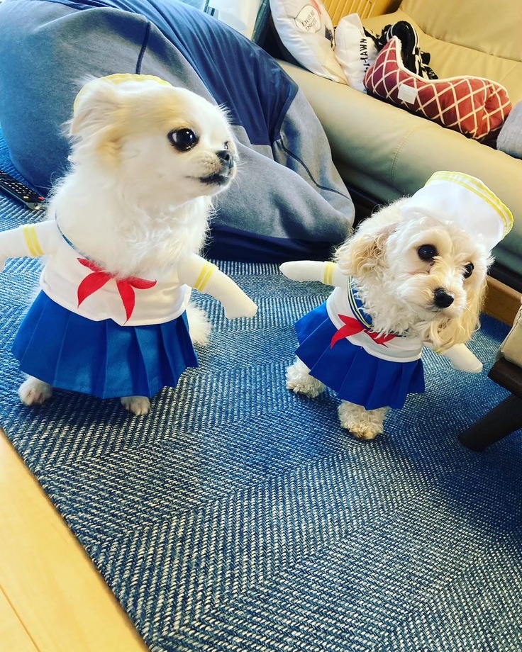 麦と杏は性格は真逆ですが、お互いに相手の姿が見えないと探し回るのでなんだかんだ仲良しです🐶