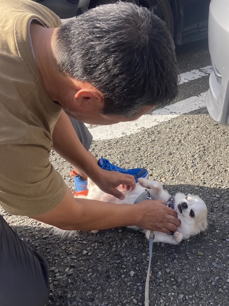 病院に毎回付き添ってくれる叔父さんを見た瞬間お腹見せて喜んでる麦🐶