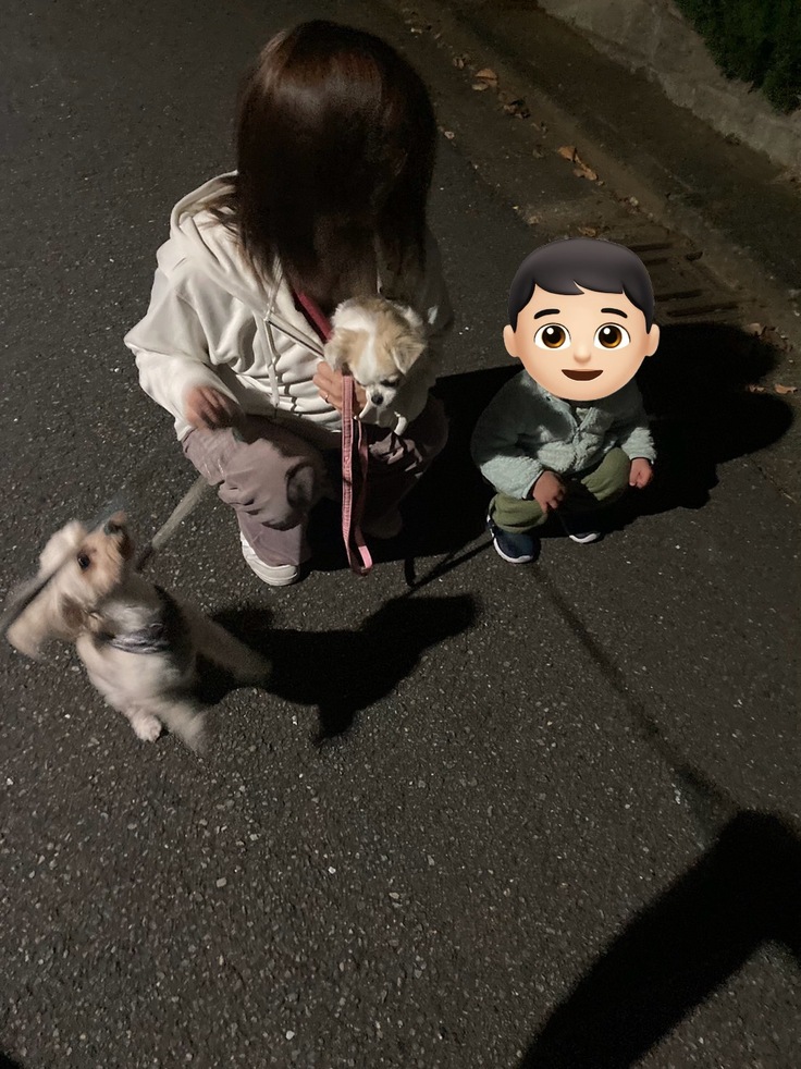 今日は麦の体調がよさそうだったので抱っこで杏の散歩に付き添いました🐶
