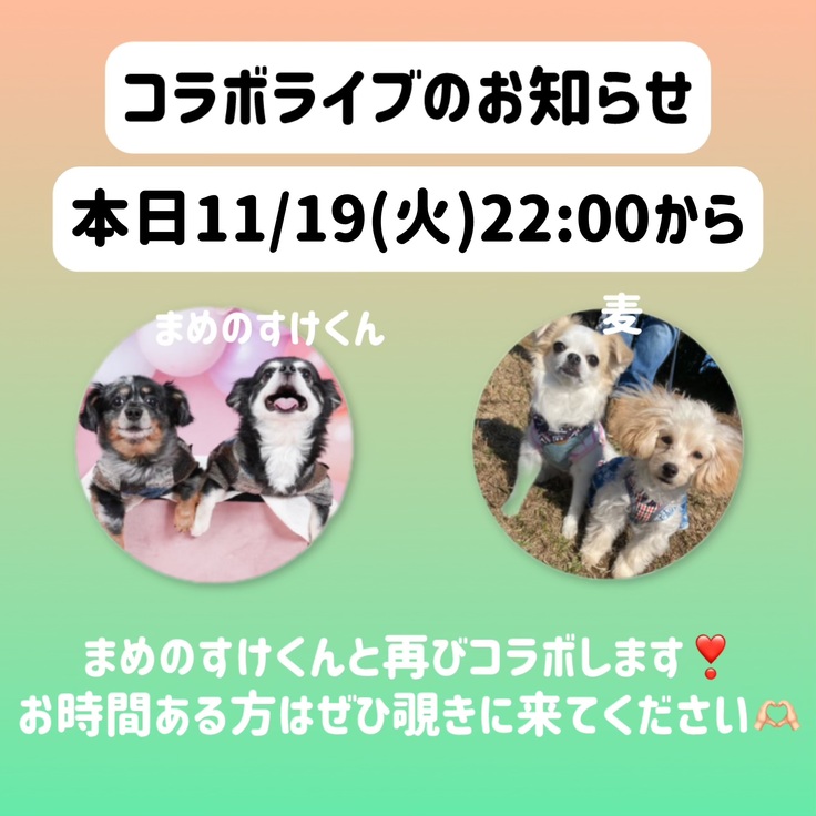 本日この後22時よりインスタコラボライブします🌟