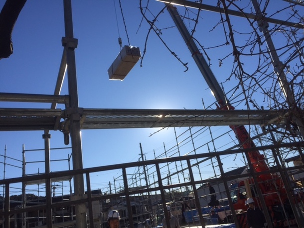 今日も、おおきな工事車両がたくさんの木を運んでくれています。