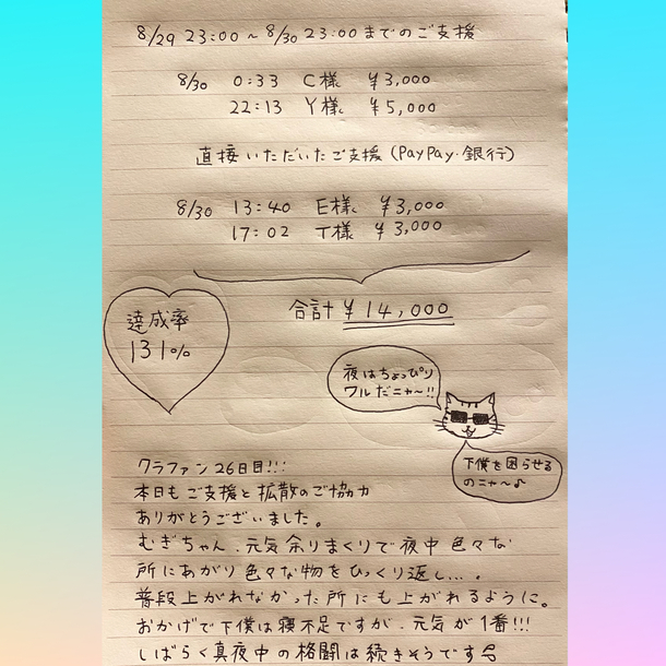 8/29 23:00〜8/30 23:00までのご支援🍀