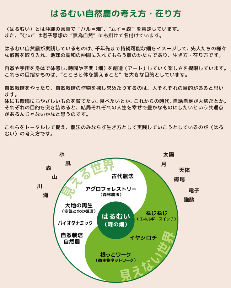 農法という枠にとらわれず、古来から伝わる先人たちの様々な叡智を取り入れ、自然と対話し、畑でアートする「はるむい」の概要
