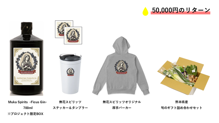 プロジェクト実施完了日までは集まった応援者のご意見を集約分析し今後の製造などにご参考にさせて頂くと同時に、クラフトジンの製造と出荷の準備などを進めさせて頂きます。 資金の使途は以下の通りとなります。 ・「Muka Spirits -Ficus Gin-(フィカスジン)/ 700ml」の試験蒸留に伴う天草産ボタニカルやスピリッツの仕入れ ・プロジェクト限定オリジナルボックスの製作費やボトルの仕入れ ・蒸留所建設に伴う諸経費(蒸留器・廃液処理設備費用など) ・リターンに伴うオリジナルノベルティの製作費 など
