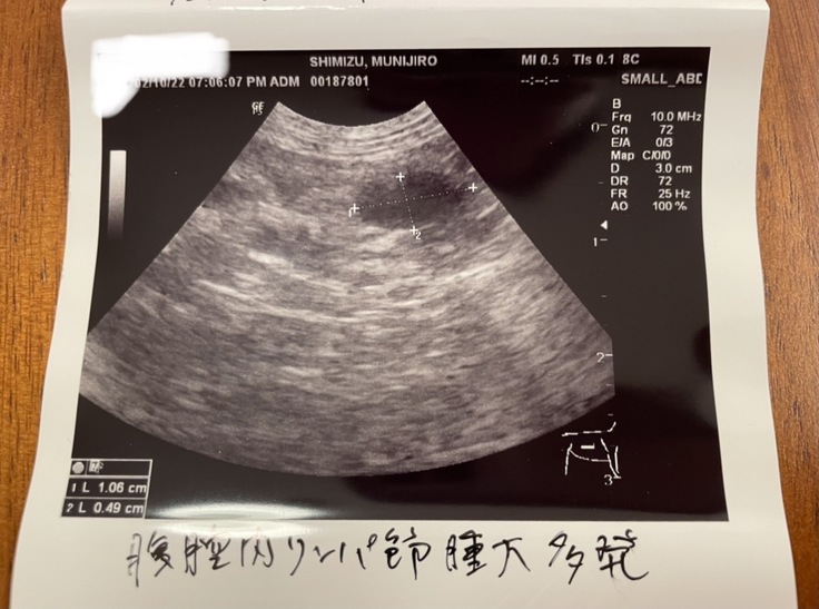 血液検査の結果と、腎臓と腹腔内のリンパ節が肥大していることから、FIPの可能性が高いと診断されました。
