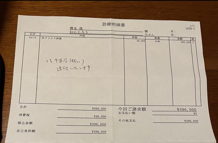 各種検査(血液・エコー・眼):36,960円(4週に一度の検査・1回は終了)