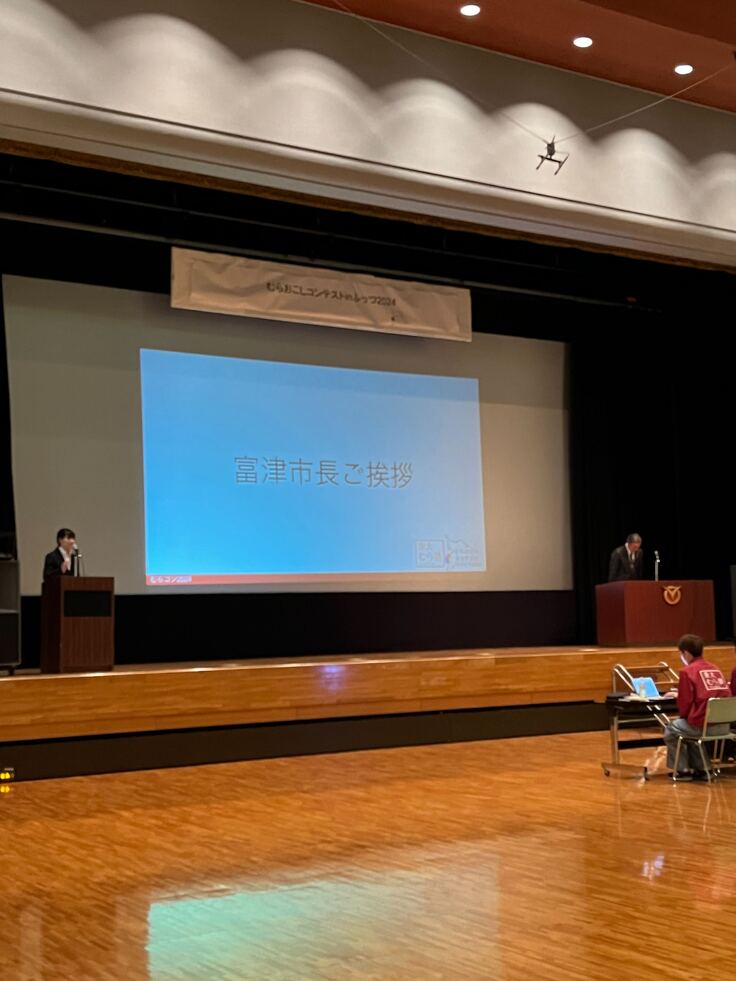 参加学生の到着後、12:30から富津市民会館で開会式を行いました。富津市長や市役所の方々、天羽地区区長会の方々にご参加いただきました!