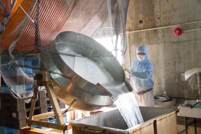 低温加熱で丁寧に炊き上げる「深海の華」は、海洋深層水のミネラルを残す製塩方法にこだわりました。