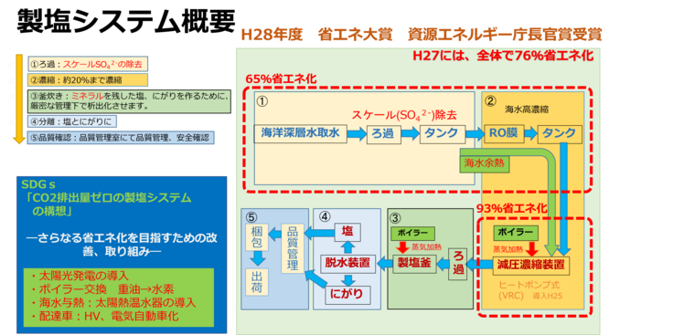 濃縮装置で93%、工場全体で76%の化石燃料の使用量の削減に成功し、平成28年度の経済産業省「省エネ大賞」では資源エネルギー長官表彰を高知県で初めて受賞しました。