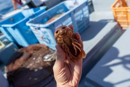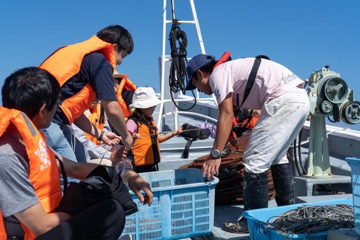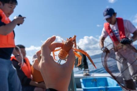次世代につなぐ取り組みは、子供たちに深海生物を見て触れることで興味を持ってもらい「自然の大切さ」「命の大切さ」を漁師の視点で伝え、生物の生態や多様性について少しでも興味を持ってもらえるようプログラムを行っているそうです。