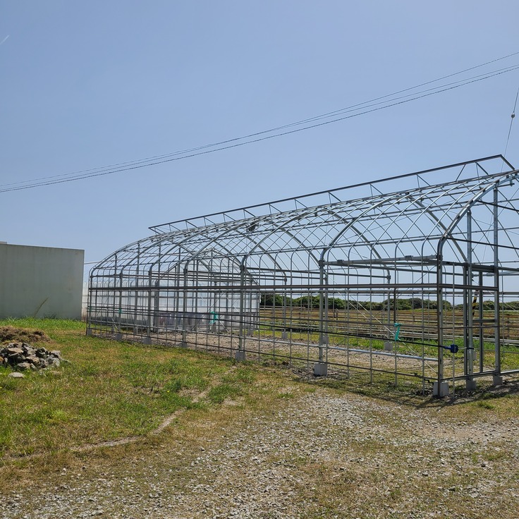会社の敷地内に桜を植えました。5年後には小さな桜の道になる予定です。この場所でお花見が楽しめるよう、一般のお客様に開放しようと計画しています。近くの天日ハウスも増築中。