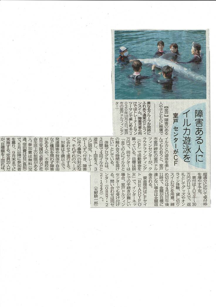 2月26日に今回の室戸ドルフィンセンターの挑戦を高知新聞に掲載していただきました!