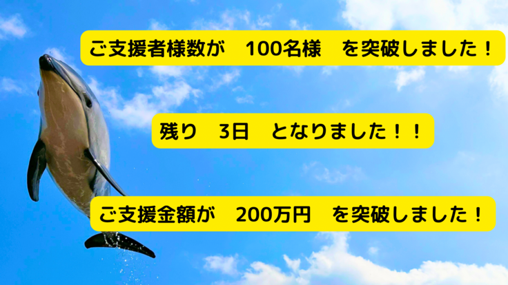 姉妹施設、日本ドルフィンセンタークラウドファンディングのカウントダウンが始まっています。