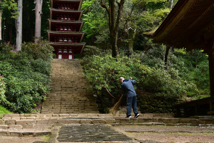 鎧坂の石段や五重塔・奥之院への道中と室生寺ならではの清掃風景ですが、昔から変わらず竹ほうきで行っています(最近多少ブロワーの力を借りてますが)。石段の整備や参道の整備も重機が入れる箇所が限られるので、人力で石や砂利を運んでいます。昔から広い境内を職員の手で管理してきた室生寺です、これからも変わらぬ室生寺維持のため精進してまいります。