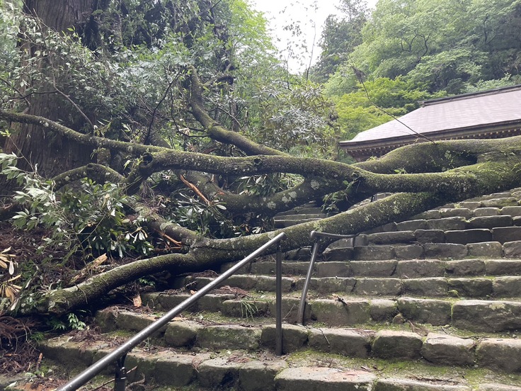 皆様よりクラウドファンディングにてご支援いただきました、支援金に若干余裕がありましたので、倒木の撤去・手摺修復にあてさせていただきますことご報告いたします。 合掌