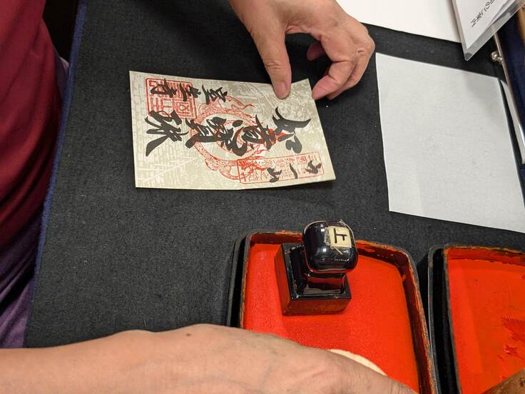 鎧坂を印刷した用紙に、如意宝珠の御朱印となります