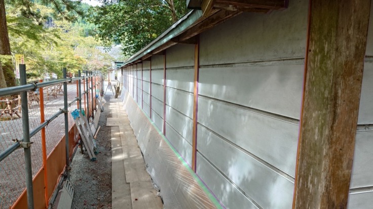 暑さ厳しい日が続いておりますが、秋彼岸にもなりますと室生の朝晩は肌寒くなってまいります。日中との寒暖差もあって体調にも気を付けなければなりません。日中の暑い最中、職人さんによる白壁工事は進んでおります。今後台風等の気象状況にもよりますが、10月初めには工事完了予定です。