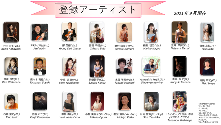 そこで、事業のPRと活動を知っていただく事で、皆様からのご支援に繋がっていくよう、ミュージック・オフィス♪DoReMiの登録アーティストを中心とする、「音楽」の宅配便♪PRコンサートを年1回開催しております。現在までに6回のPRコンサートを開催しました。