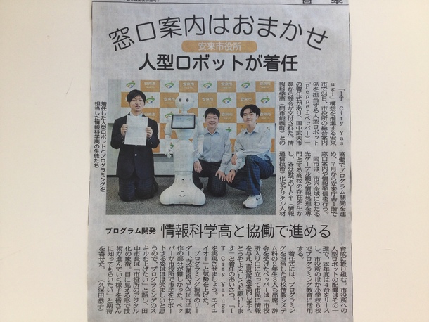 本日(5/27)の地元新聞に、島根県安来市の市役所の総合案内係を担当する人型ロボット「Pepper(ペッパー)」の着任式の記事が掲載されていました。