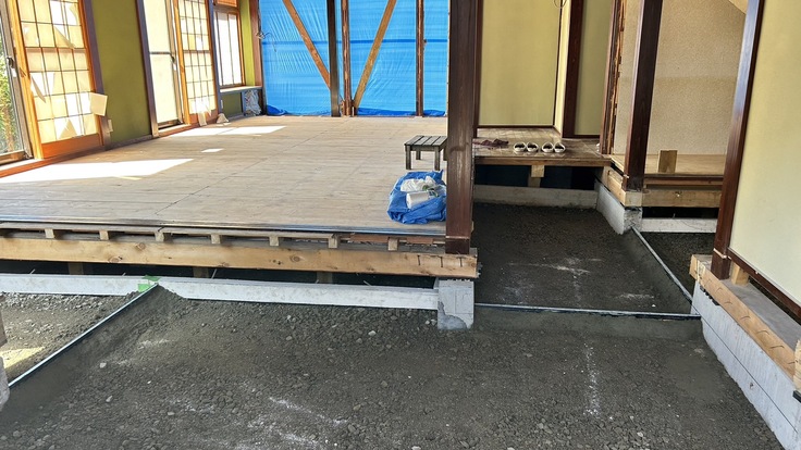 大きな工事はワイケイホームに依頼し、解体・土間工事・屋根の取り付けが進んでおります。