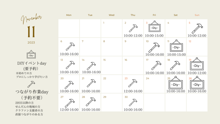 半分はセルフビルドで行いますので、11月からはDIYイベントが始まります!!