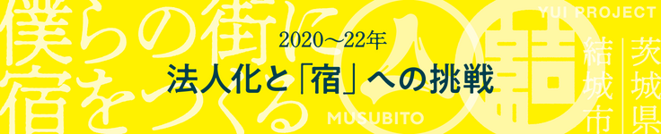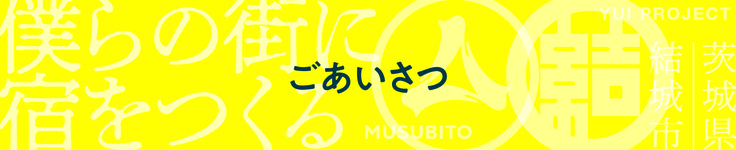 共同代表 飯野 勝智(いいの かつとし)/NIDO一級建築士事務所 野口 純一(のぐち じゅんいち)/結城商工会議所 紬と歴史ある街並みが今なお残る街、茨城県結城市を舞台に人やモノの縁を結ぶ活動をしている。 2010年に結いプロジェクト結成し、ものづくりのお祭り「結い市」,音楽祭「結いのおと」の企画運営をはじめ、古民家を改装したシェアスペース「yuinowa」の運営「結い暖簾」アートプロジェクト、地域資源を活かした商品開発など年代や立場を超えたたくさんの仲間が活躍できる環境を創っている。 2021年には、これまでの活動を経て結いプロジェクトのコンセプトである「結ぶ人」(MUSUBITO)としての役割を見つめ直し、より明確に、より発信力をもって活動を継続していく目的で一般社団法人MUSUBITOを設立。 現在街なかに市内初のゲストハウスを創るプロジェクトも進行中。