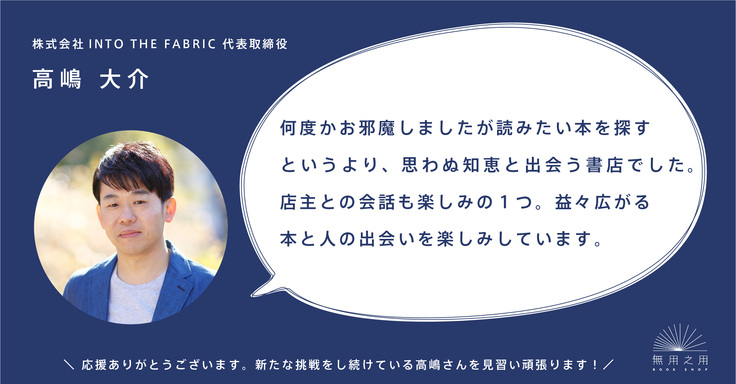 残り9日【応援vol.20】高嶋大介さん(INTO THE FABRIC)