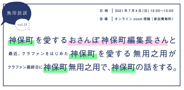 兼ねてから、じっくり神保町の話をしたいと思っていた、おさんぽ神保町の編集長・石川さんをお招きし、神保町で神保町の話をしたいと思います。