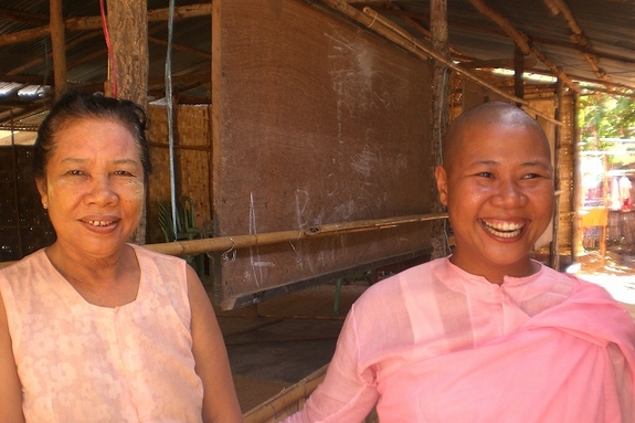 写真右が校長先生のドーザヤワディ尼僧。10歳の頃から尼僧になりたかったドーザヤワディ尼僧ですが、両親に反対され続けていました。それでも本人は尼になるのだ!という強い決意の元、高校時代も髪を剃って通学(!)。高校卒業後に両親の反対を押し切って尼僧さんとなられました。
