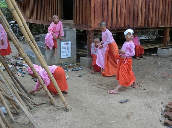 そんな優しく、どっしりとした尼僧校長先生の下、小さい女の子の尼僧さんたちがこの孤児院に住んでいます。休み時間、石投げをして遊ぶ姿は普通の女の子たちです。
