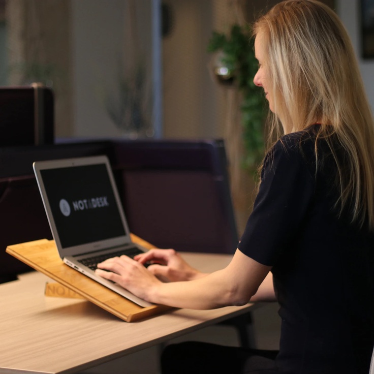 ベルギーに拠点を置くブランド、Notedeskの竹で作られた高さが調節可能なスタンディングデスクです。ハンドメイド。