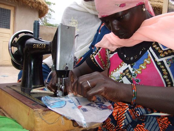 絵本の表紙にも使う予定の色鮮やかな布を、お母さん達自らが市場で選んで調達し、裁断し、バッグやエプロン等一つ一つを丁寧に縫い上げています。