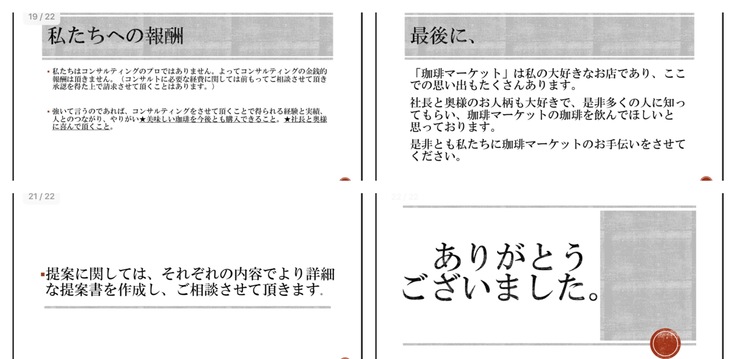 そのうちに、社長もお戻りになり、もう一度一緒にプレゼンを見て頂きました。